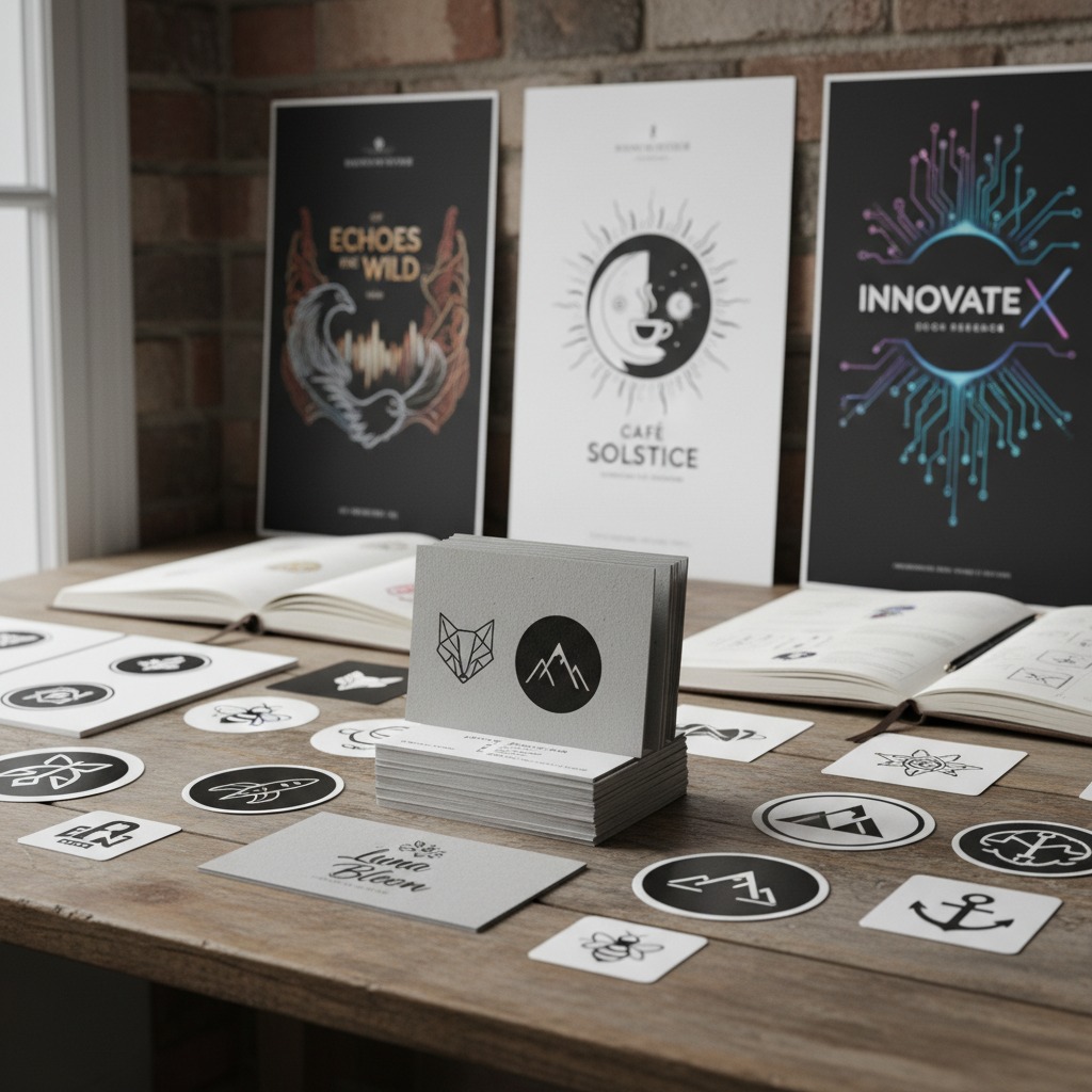 Wir gestalten Logos, Visitenkarten, Poster und Websites, die Ihre Marke einzigartig präsentieren.